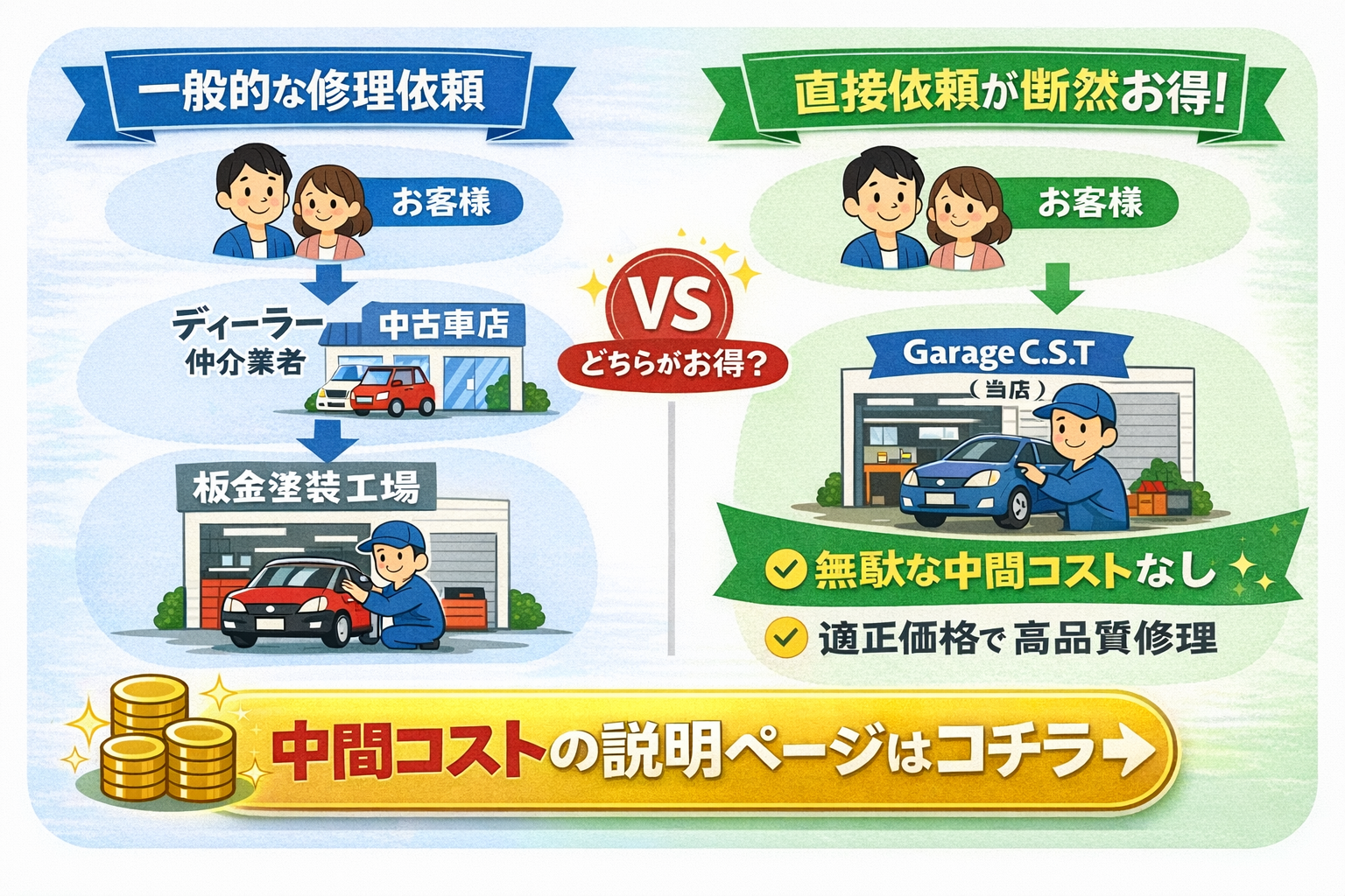 Garage C.S.Tでは、外装カスタムや全塗装を通じて「乗る楽しさ」「所有する満足感」を高める一台づくりをご提案しております。